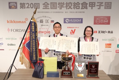 第20回学校給食甲子園は、7日、東京駒込の女子栄養大学駒込キャンパスで開催され、東京代表の新宿区立西戸山小学校の菅田望学校栄養職員・吉田美由紀調理員のペアが優勝しました。