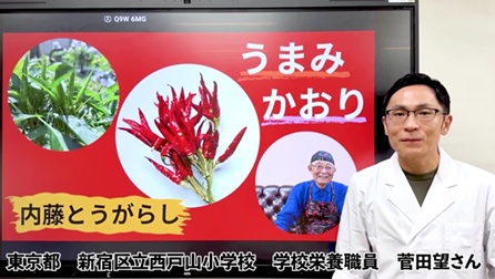 【復活した東京に伝わる伝統野菜「内藤とうがらし」についてクイズ形式で自然に理解できる菅田先生の食育授業】